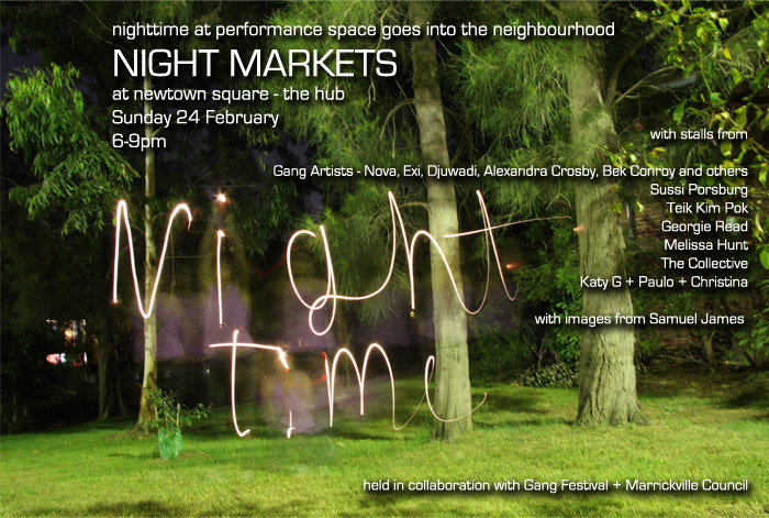 The first laboratory will feature participants in Gang Festival. Co-curated by the directors of the festival and Bill and George, participants will be drawn from the Gang Festival artist exchange program and artists involved with Sydney Artist Run Initiatives as well as members of the community in Redfern.